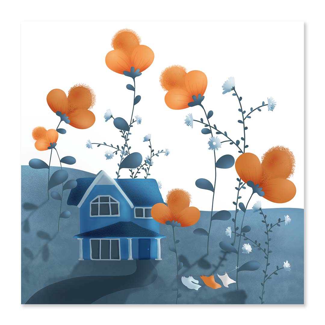 Printas MĖLYNAS NAMAS TARP GĖLIŲ